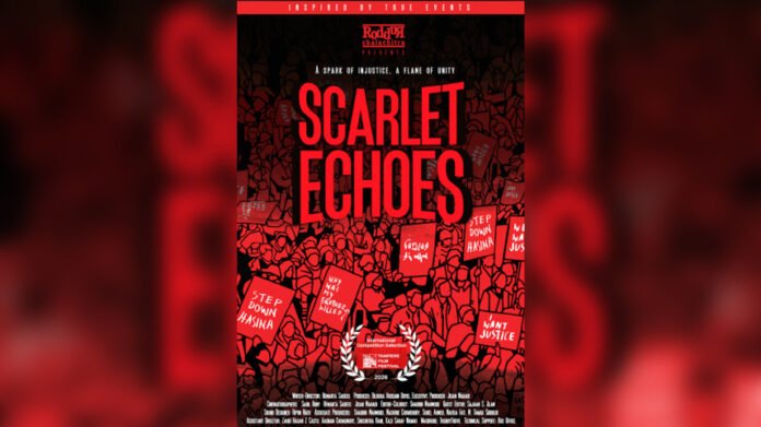 ‘স্কারলেট ইকোস’ একটি ডকু-ফিকশনধর্মী চলচ্চিত্র। এতে ২০২৪ সালের উত্তাল জুলাই আন্দোলনের বাস্তব ফুটেজের সঙ্গে ফিকশনাল চিত্রায়ন করা হয়েছে।