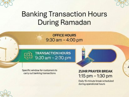 বিজ্ঞপ্তিতে আরও বলা হয়, জোহরের নামাজের জন্য দুপুর সোয়া ১টা থেকে দেড়টা পর্যন্ত ১৫ মিনিট বিরতি থাকবে। তবে এই সময়ে নিরবচ্ছিন্ন সেবা নিশ্চিত করতে ব্যাংকগুলোকে অভ্যন্তরীণ সমন্বয় কার্যক্রম চালু রাখার নির্দেশ দেওয়া হয়েছে। শুক্র ও শনিবার সাপ্তাহিক ছুটি অপরিবর্তিত থাকবে।